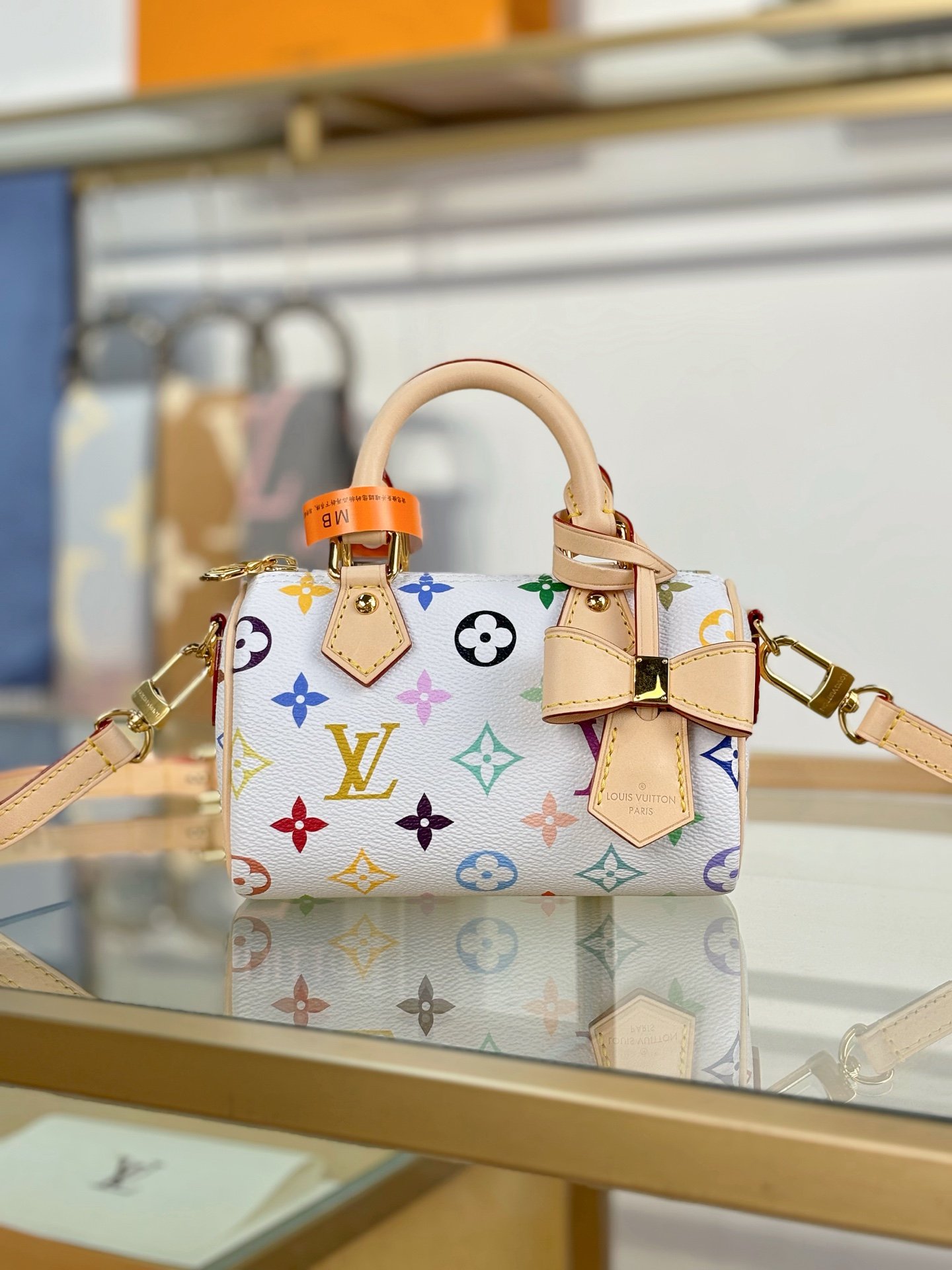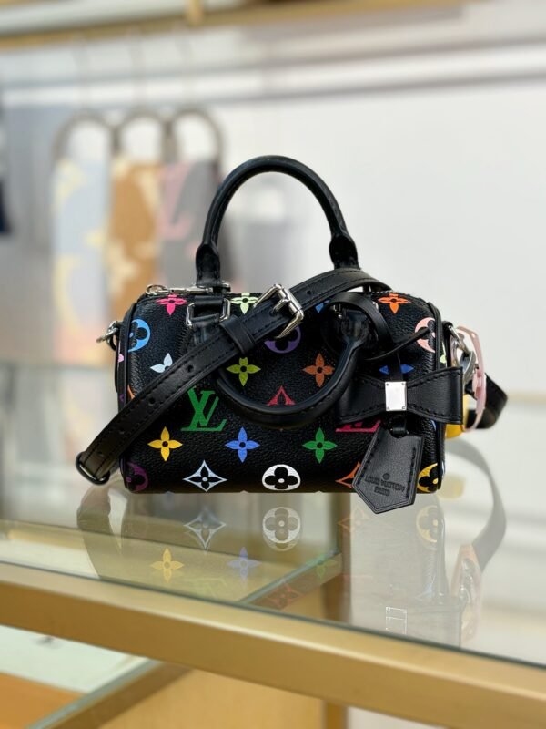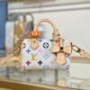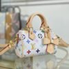 The scaled-down Nano Speedy makes a playful statement in Monogram coated canvas, which has been reworked in upbeat tones as part of the re-edition of the Louis Vuitton x Murakami collection. Natural cowhide leather trims add a timeless touch, as do two Toron top handles and a gleaming golden padlock in homage to the House’s travel heritage. Complete with a removable, adjustable strap and an exclusive LV x TM keybell.