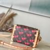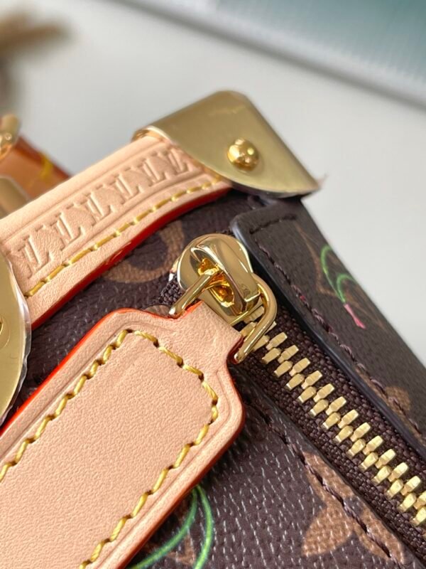 Reflecting the playful spirit of the celebratory re-edition of the Louis Vuitton x Murakami collection, the Side Trunk MM is crafted from classic Monogram coated canvas adorned with luscious cherry motifs in the Japanese artist’s exuberant aesthetic. Natural cowhide leather trims and golden hardware pay homage to the House’s travel heritage, including riveted corners and an S-lock closure.