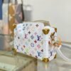 The iconic Side Trunk MM makes a spirited everyday statement in a playful version of the Monogram motif from the re-edition of the Louis Vuitton x Murakami collection. Crafted from supple cowhide, the rectangular silhouette pays homage to the House’s archival luggage complete with golden reinforced corners and an emblematic S-lock closure. The removable handle embellished with studs and strap offer versatile carry options, while the inside is large enough to stow daily essentials.