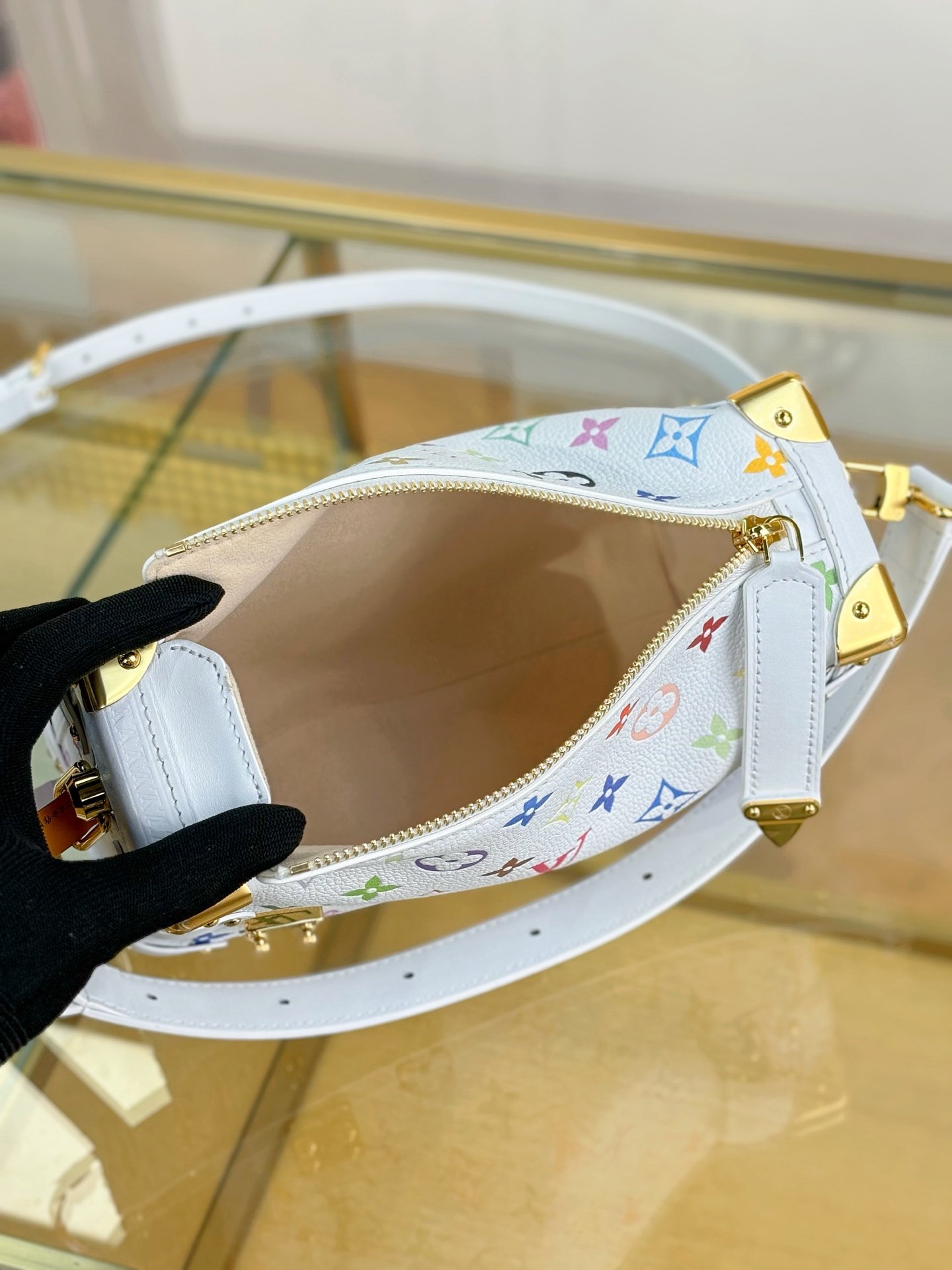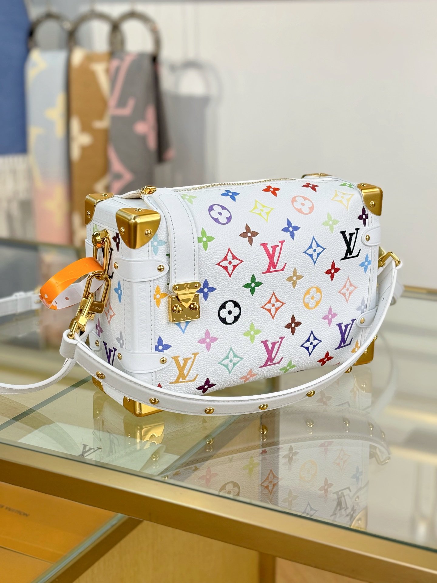 The iconic Side Trunk MM makes a spirited everyday statement in a playful version of the Monogram motif from the re-edition of the Louis Vuitton x Murakami collection. Crafted from supple cowhide, the rectangular silhouette pays homage to the House’s archival luggage complete with golden reinforced corners and an emblematic S-lock closure. The removable handle embellished with studs and strap offer versatile carry options, while the inside is large enough to stow daily essentials.