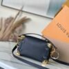 Crafted from grained calfskin leather with a gold-color S-lock and corners, the Side Trunk PM takes its inspiration from the House’s vintage trunks. A detachable leather handle and a removable and adjustable leather strap give carry options. The Side Trunk fits a wallet, large smartphone, keys, and lipstick.