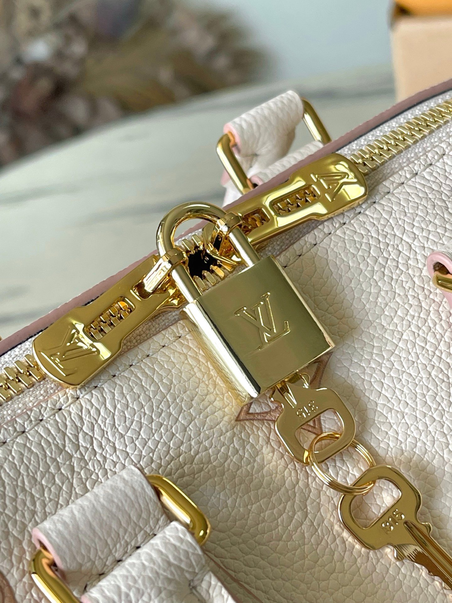 The House’s iconic Monogram Empreinte leather is reimagined for the season with a tonal outline, showcased on this chic edition of the Speedy Bandoulière 20. It opens to reveal a striped lining and is embellished with a signature gold-toned padlock and removable chain. Sized to store everyday essentials, it can be carried by hand or styled cross-body.